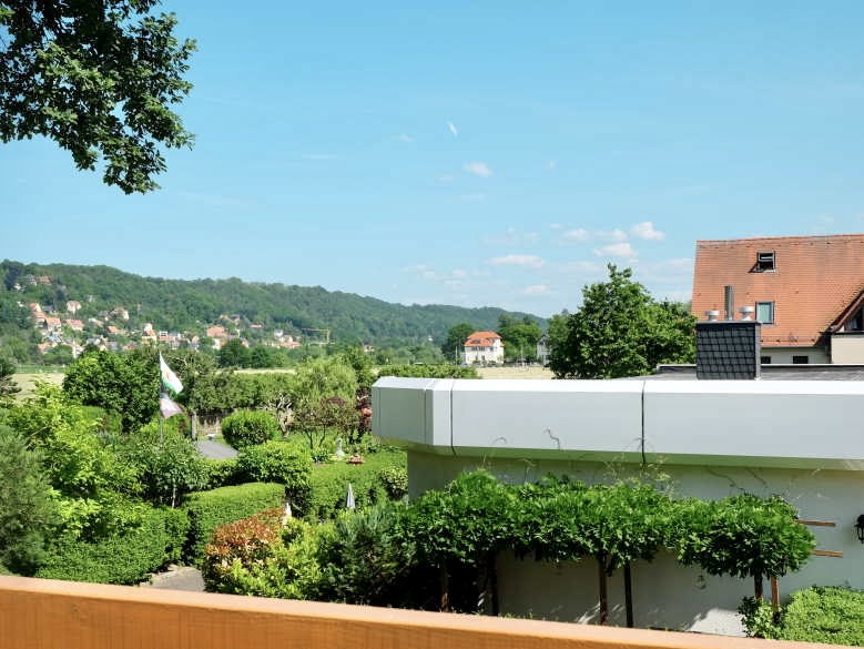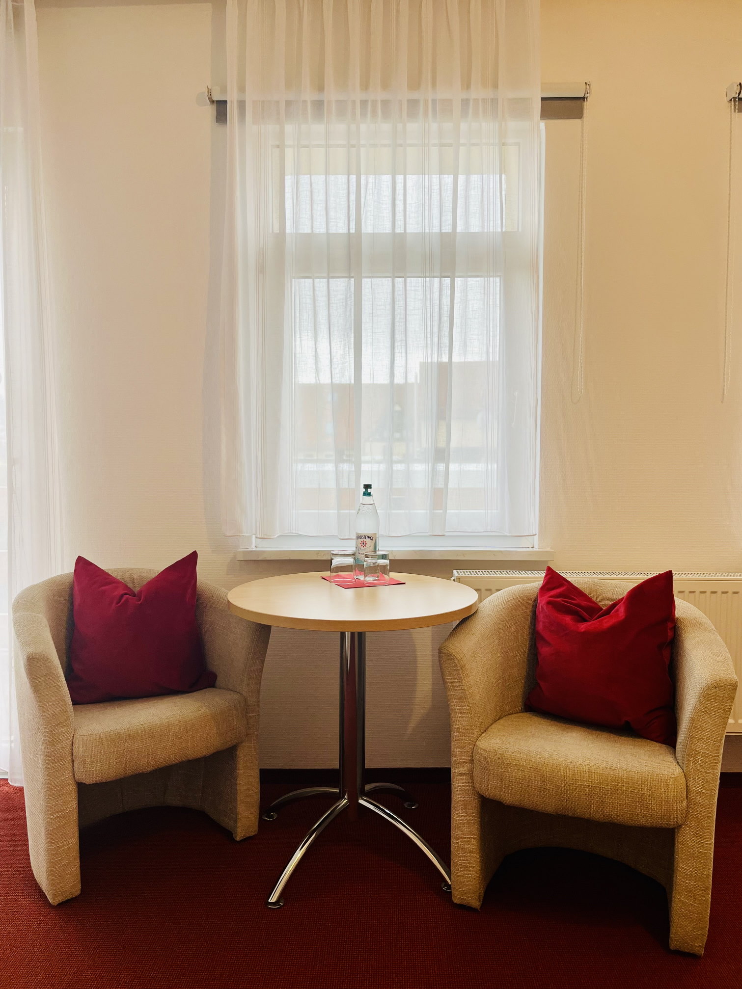 Das Doppelzimmer 1 im Obergeschoss ist für bis zu zwei Personen ausgelegt und besitzt eine kleine Sitzlounge und einen eigenen Balkon. Das Bad mit Dusche ist modern ausgestattet. Zum Doppelzimmer gehören ein PKW-Parkplatz und ein abschließbarer Fahrradraum.